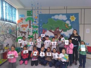 Durante a aula foram abordados temas relacionados ao meio ambiente como biodiversidade, reciclagem, poluição, extinção de espécies, ao final da aula foi realizada uma atividade com isopor.