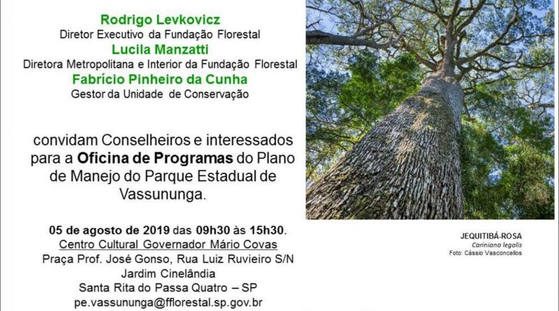 A Fundação Para a Conservação e a Produção Florestal do Estado de São Paulo (Fundação Florestal) promove nesta segunda-feira (5/8) uma consulta pública para discussão da proposta de Plano de Manejo do Parque Estadual de Vassununga, Etapa de Programas de Gestão.