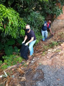 Durante todo o período da manhã, foram recolhidos na atividade 3 caminhões de possíveis criadouros como lonas, latas, garrafas pet, entre outros, sendo que desses 2 locais com larvas. Os moradores que têm acesso direto às margens do córrego em suas casas foram conscientizados sobre a importância de manter a área limpa, para prevenir a situação epidemiológica da Dengue em nosso município e para preservar o meio ambiente.