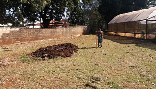 Desde 2017 o Viveiro Municipal, localizado à ETE “Manoel dos Reis Araújo”, vem desenvolvendo a prática da compostagem, todo material gerado nas atividades do viveiro de mudas é disposto em “leiras” (acúmulo linear de material), e assim que se obtém boa quantidade, ele é coberto com uma camada de aproximadamente 10cm de esterco de curral.