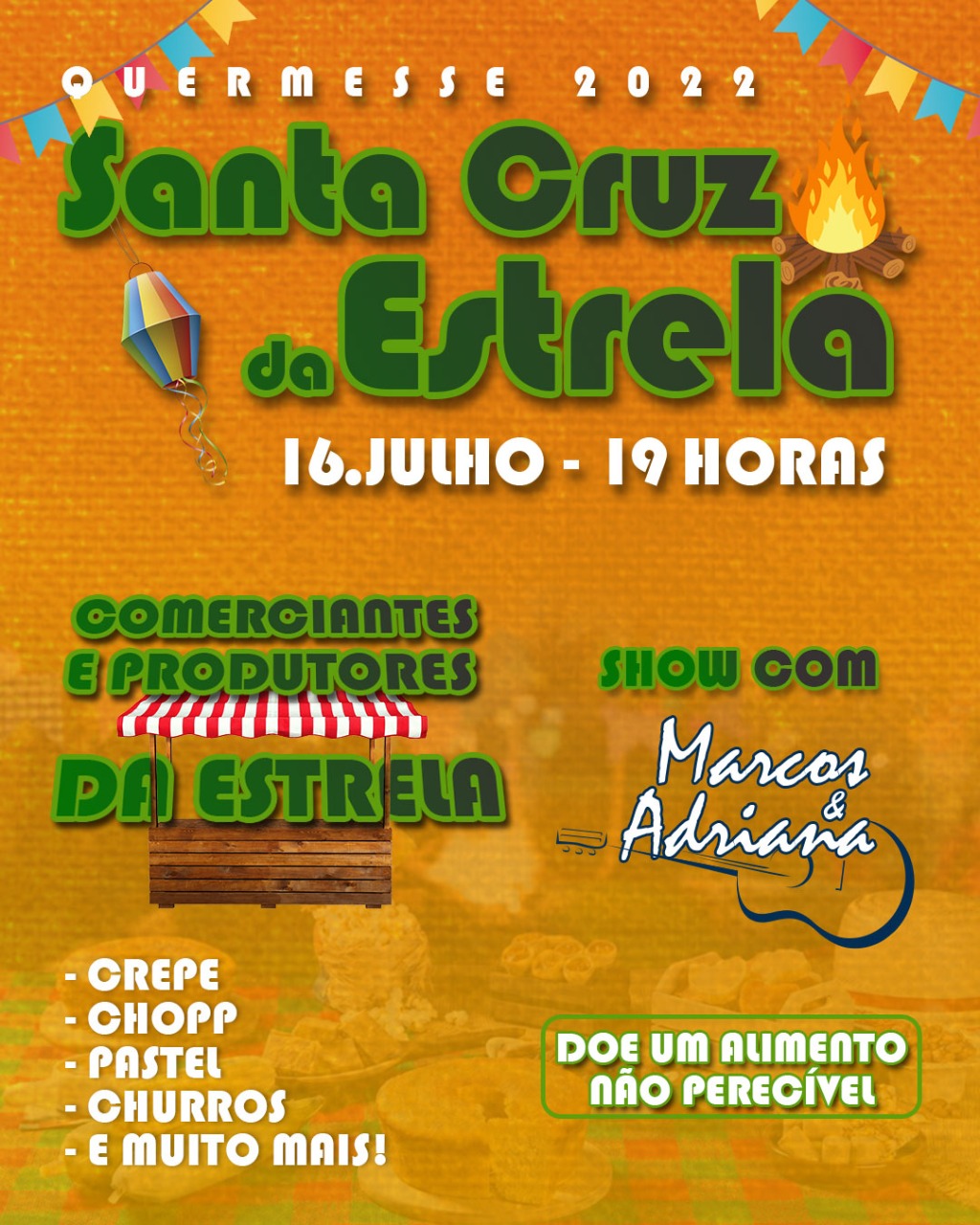 A comunidade local de Santa Cruz da Estrela, com o apoio da Prefeitura Municipal, promoverá uma Quermesse Julina. Com produtores e comerciantes locais do Distrito, a festa contará com iguarias e tradições que você só encontra em Santa Cruz da Estrela.