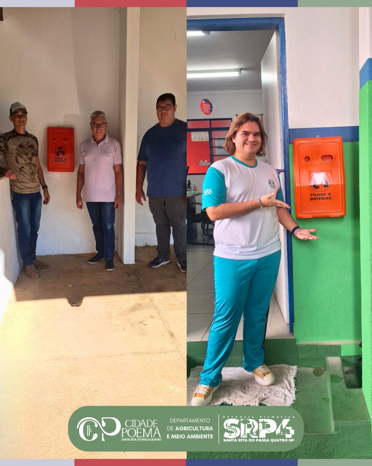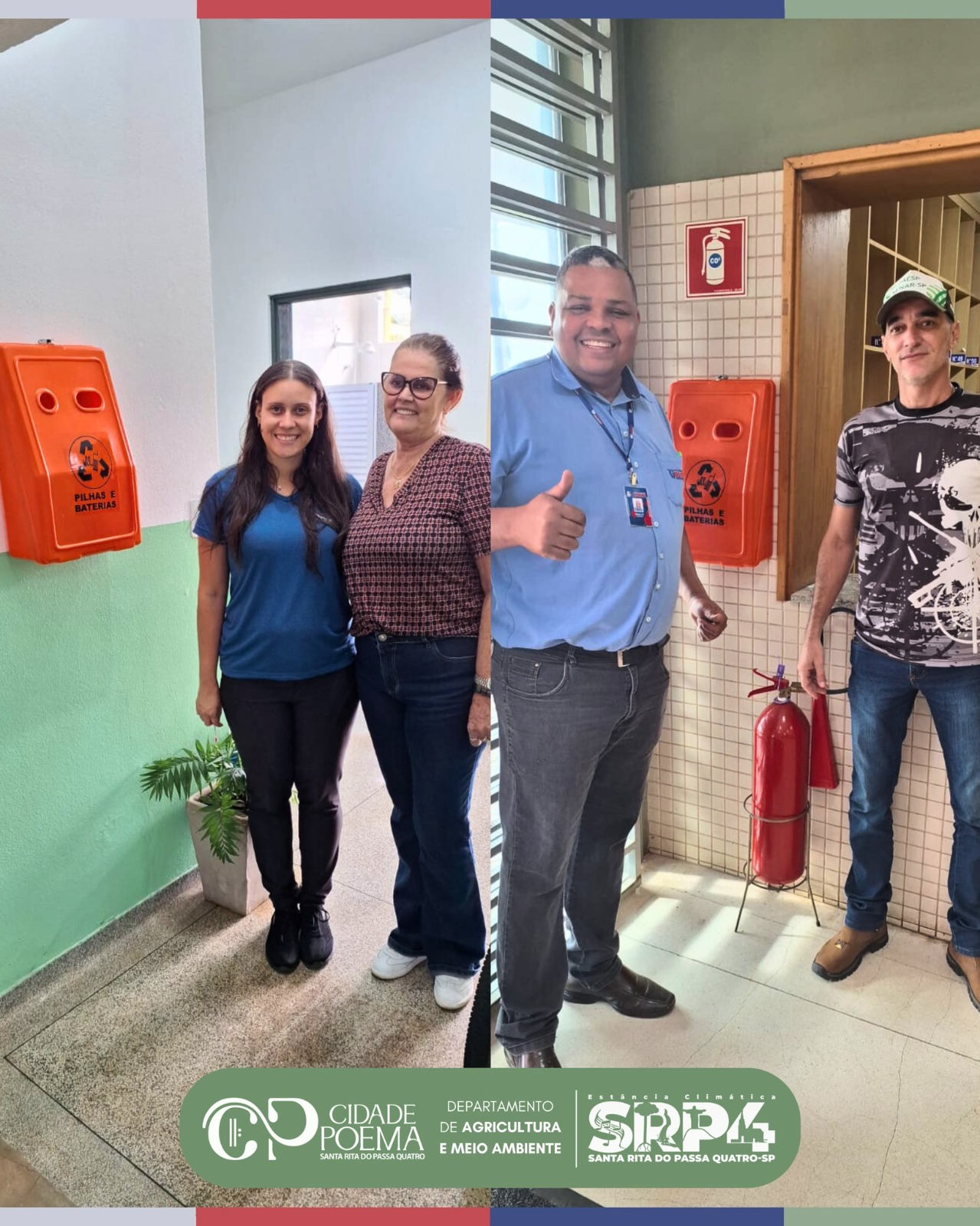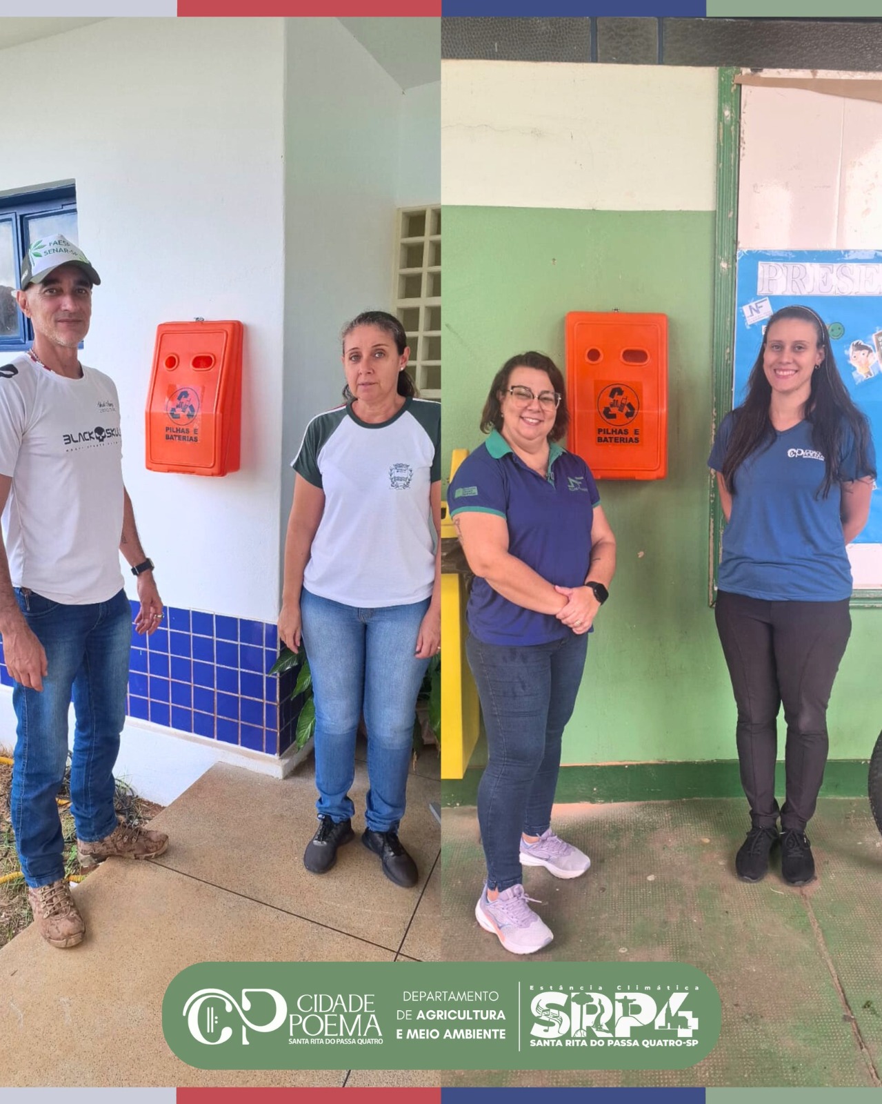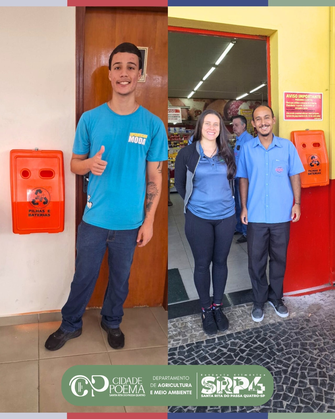 A Prefeitura Municipal de Santa Rita do Passa Quatro, através do Departamento de Agricultura e Meio Ambiente, e em parceria com a Comasa, instalou 18 coletores de pilhas em pontos estratégicos de nossa Cidade Poema para oferecer à população uma opção correta e segura para o descarte desse tipo de resíduo tão prejudicial à natureza.