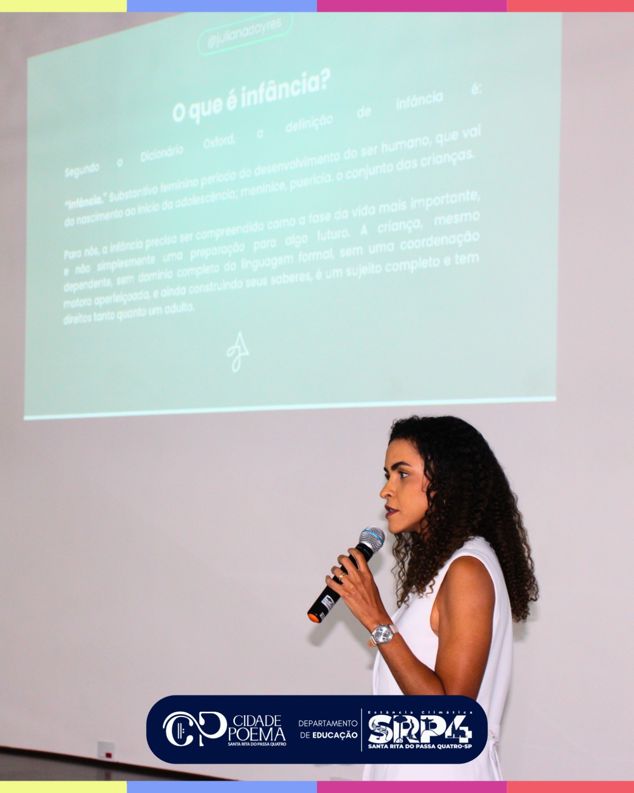 O evento contou com a abertura da Diretora do Departamento de Educação, Luciana Fröner, e dinâmicas envolventes conduzidas pelo Professor Max Silva. Um dos destaques foi a palestra sobre Perfil Comportamental Infantil, ministrada por Juliana Ayres, Especialista com diversas formações em Neurociências, Comportamento e Gestão de Pessoas.
