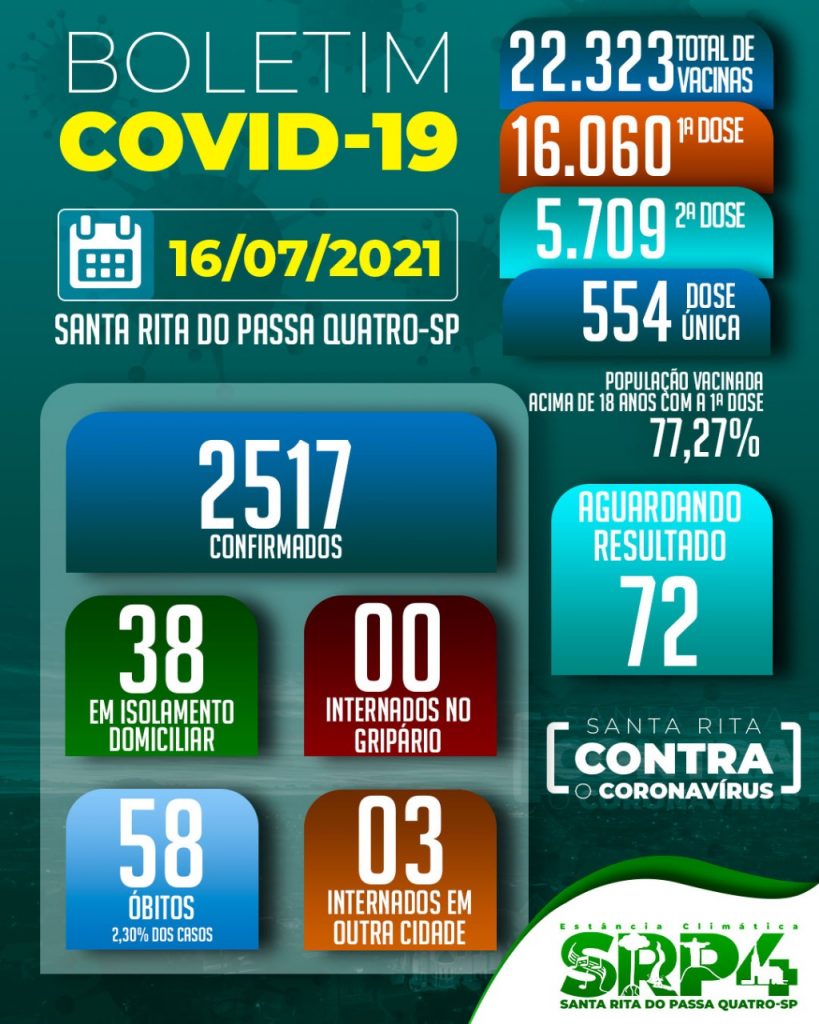 O departamento municipal de saúde, buscando zelar pela população santarritense, orienta que a mesma não deixe de cumprir com os cuidados de prevenção, ou seja, o uso adequado de máscaras, uni higienização das mãos, prática do distanciamento social e o evitar aglomerações devem ser práticas constantes até a erradicação do novo coronavírus.