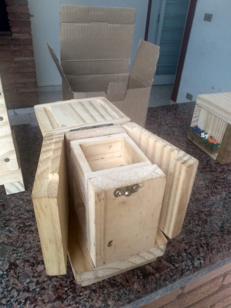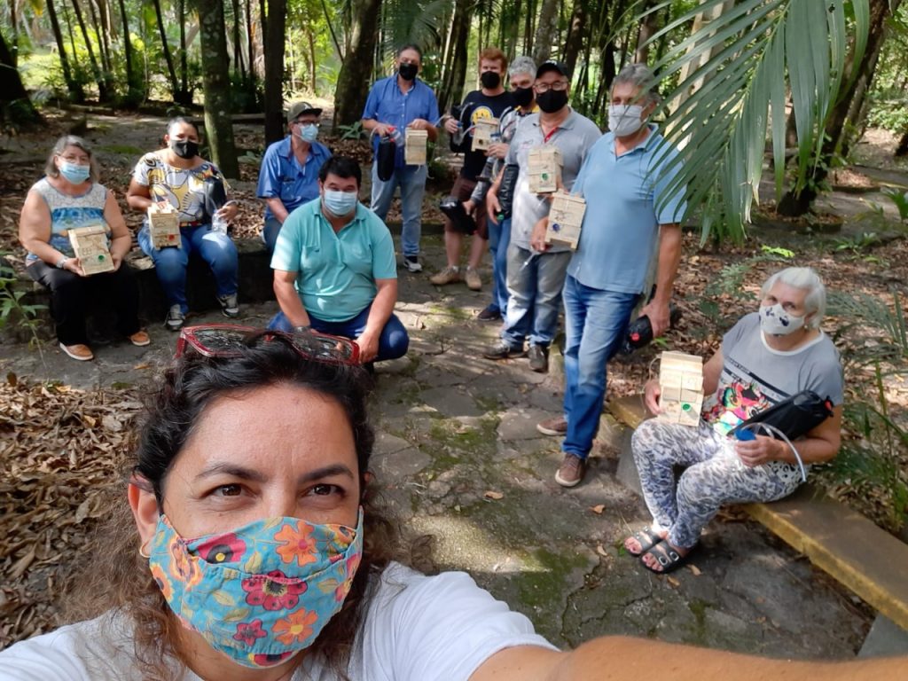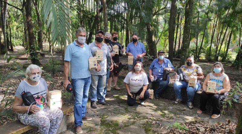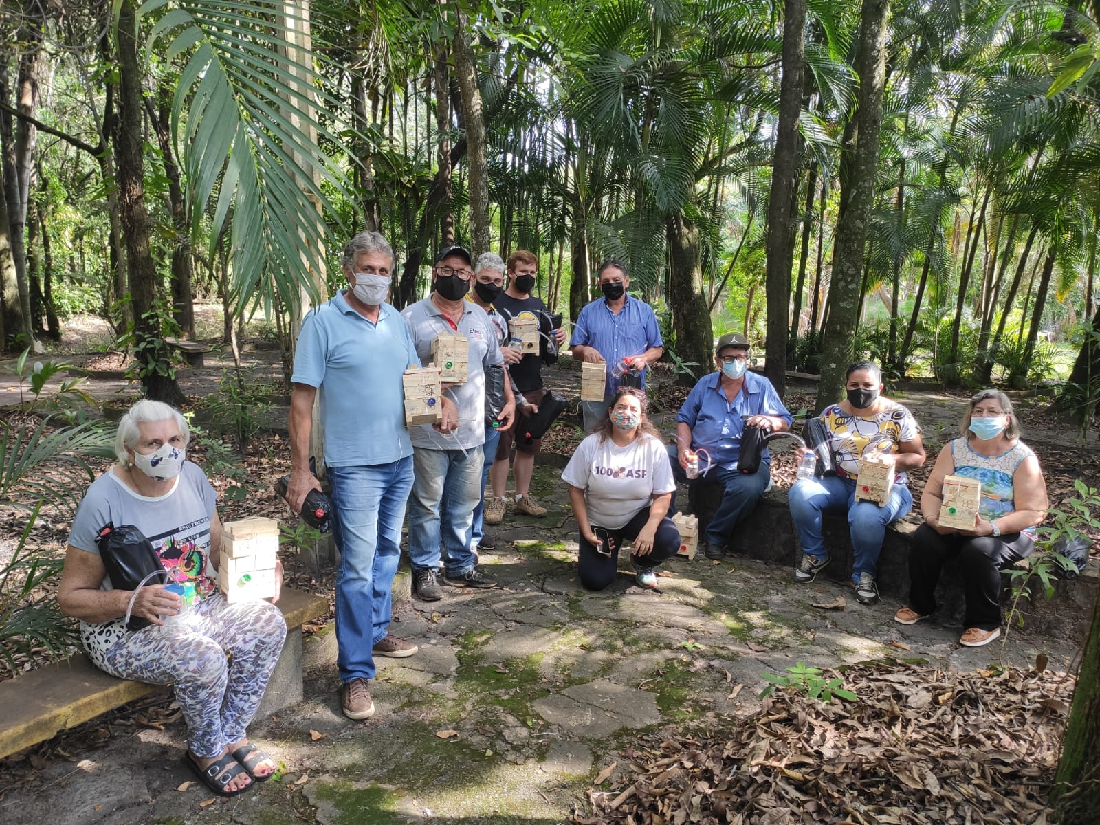 Na oficina prática realizada no Parque Turístico Municipal Pedro Girotto (Clube de Campo) nossos alunos confeccionaram as caixinhas e as iscas que servem para capturar novos enxames, além disso, também foi feito o atrativo que é o material utilizado para capturar novos enxames.