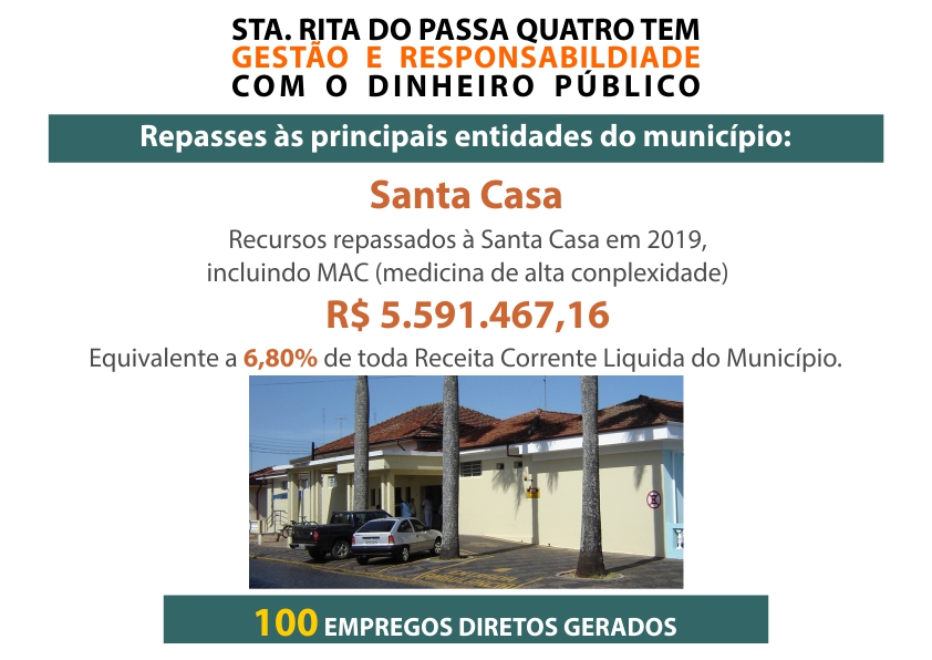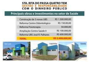 Com situação financeira estável, a Prefeitura santa-ritense se mantém em dia pagamentos de servidores e fornecedores de produtos e serviços. Além disso, nos últimos, também pode ampliar consideravelmente os seus investimentos em Saúde.