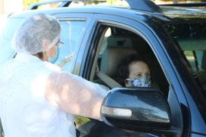 Vacinação no sistema drive thru, realizada semana passada na campanha contra gripe (AssCom/Divulgação)