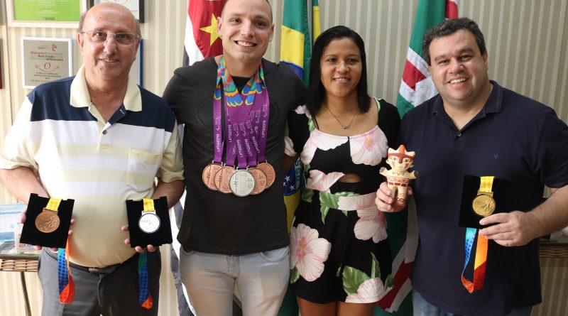 Medalhista Felipe Caltran é recebido pelo prefeito após conquistas no Peru e Austrália