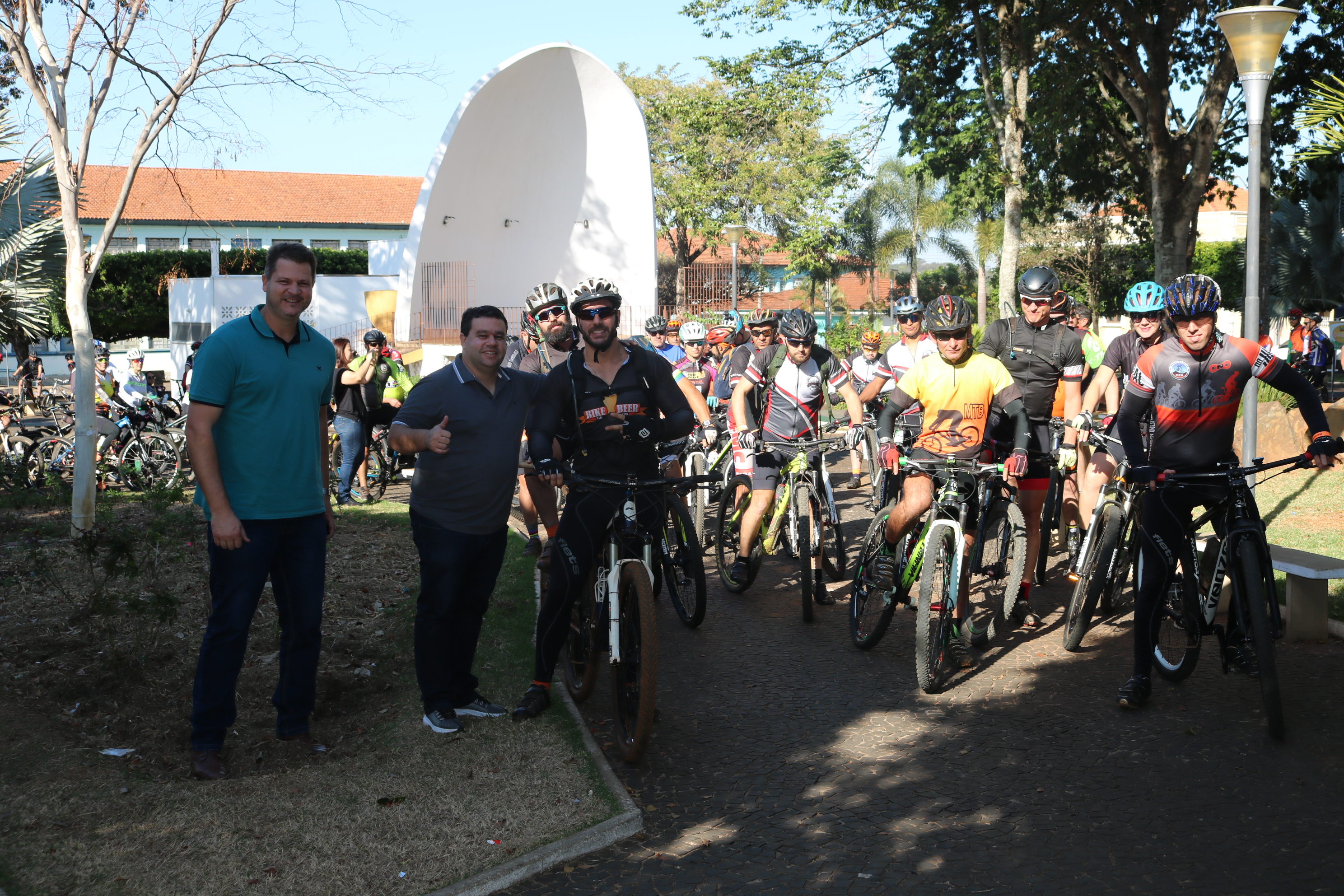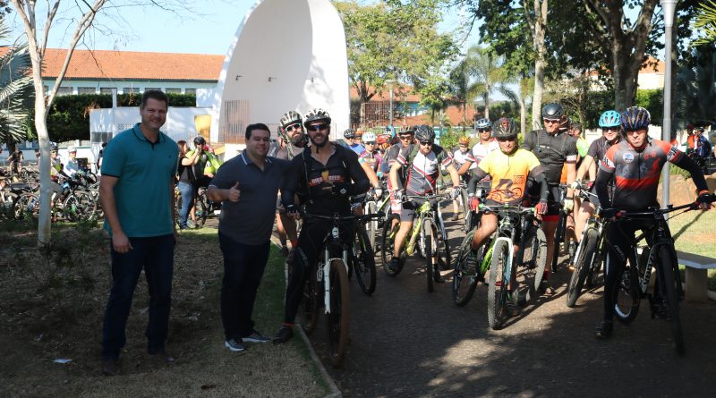 O prefeito e o diretor de Turismo antes da largada do Bike Tour, na manhã do último domingo, em Santa Rita  (AssCom/Divulgação)